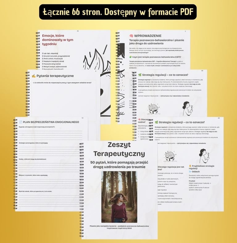 Strukturalny zeszyt oparty na terapii poznawczo-behawioralnej (CBT), który poprzez pisanie pomaga zrozumieć traumę, regulować emocje i odzyskać poczucie wpływu nad własnym życiem.